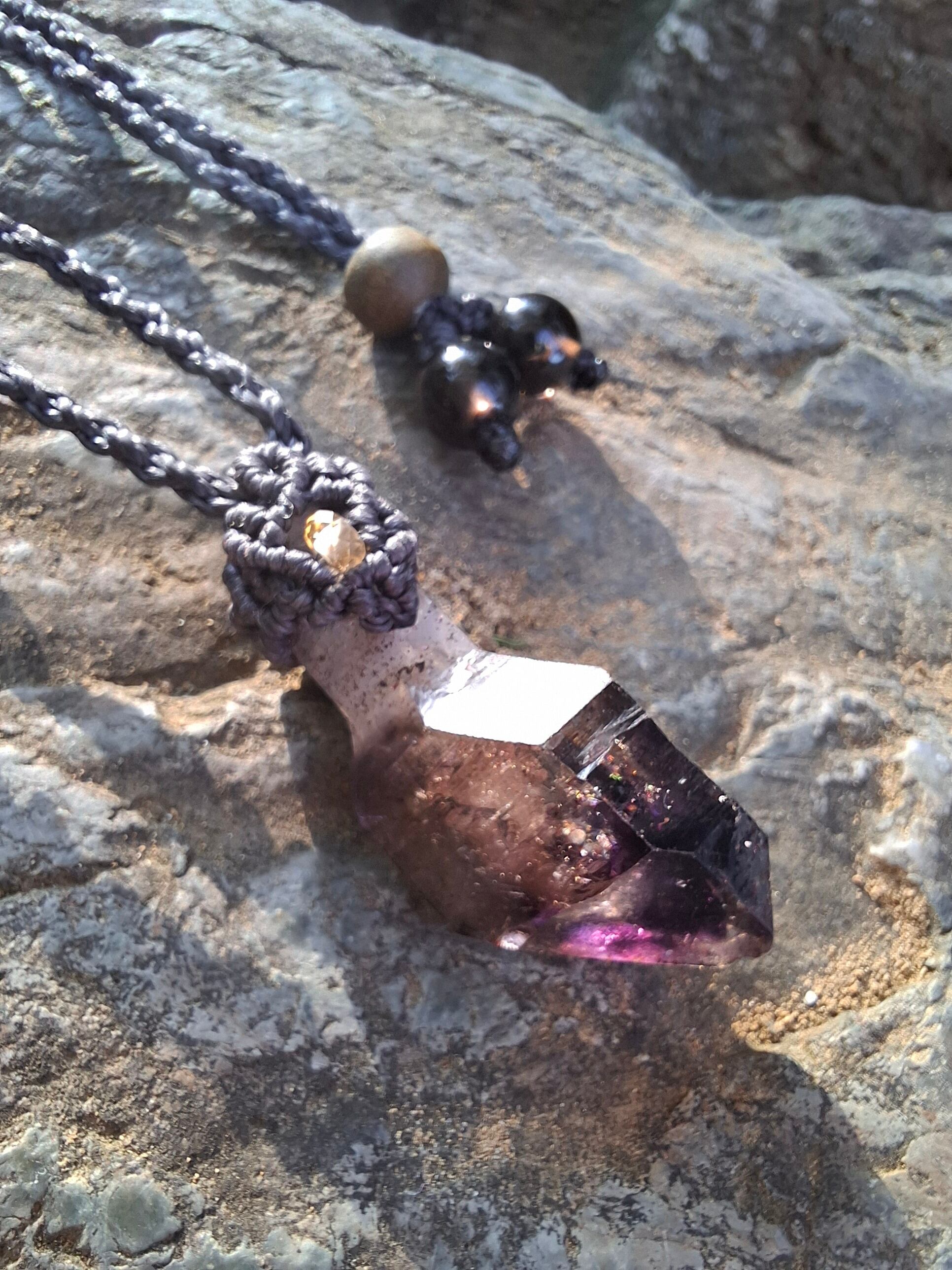 【ブラジル産】スーパーセブンの天然石マクラメペンダント[PEN-312]