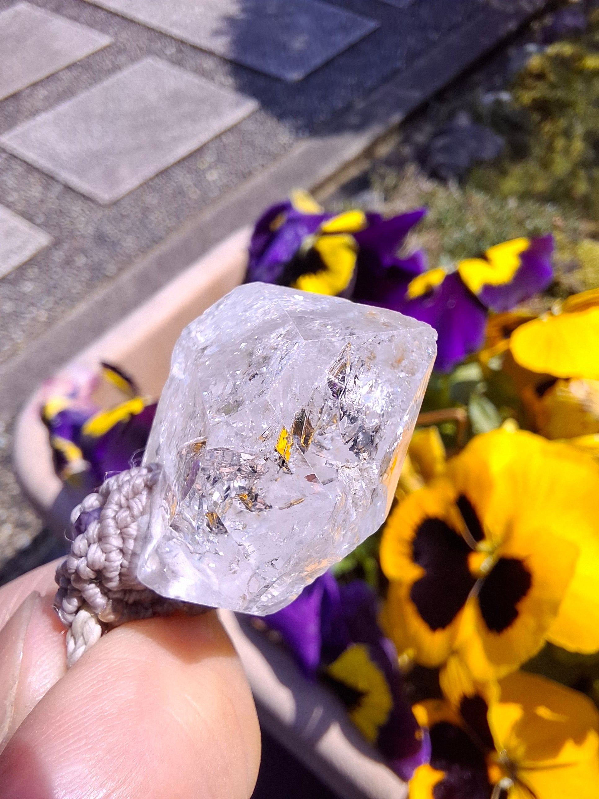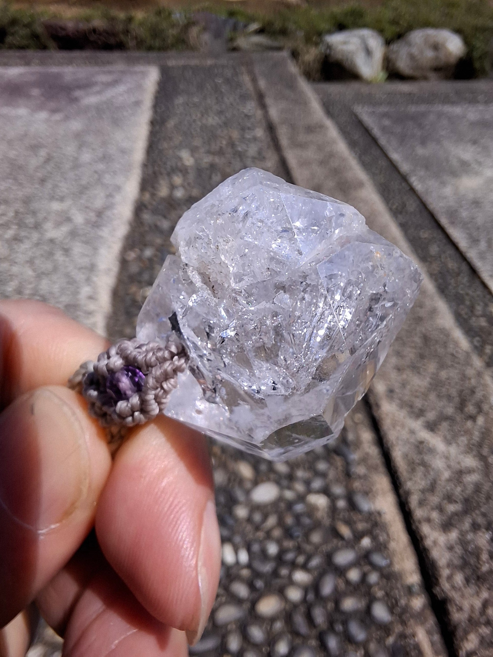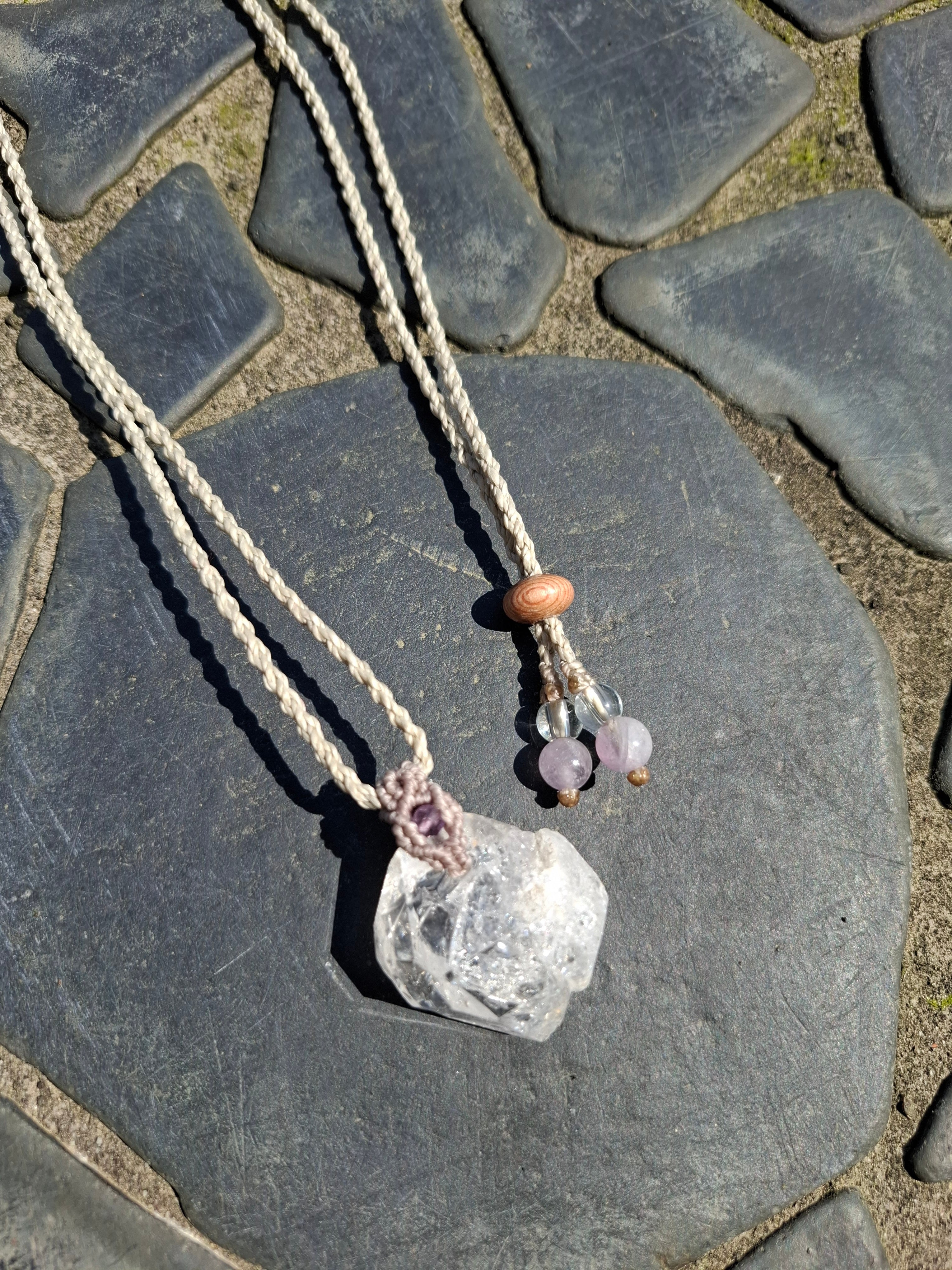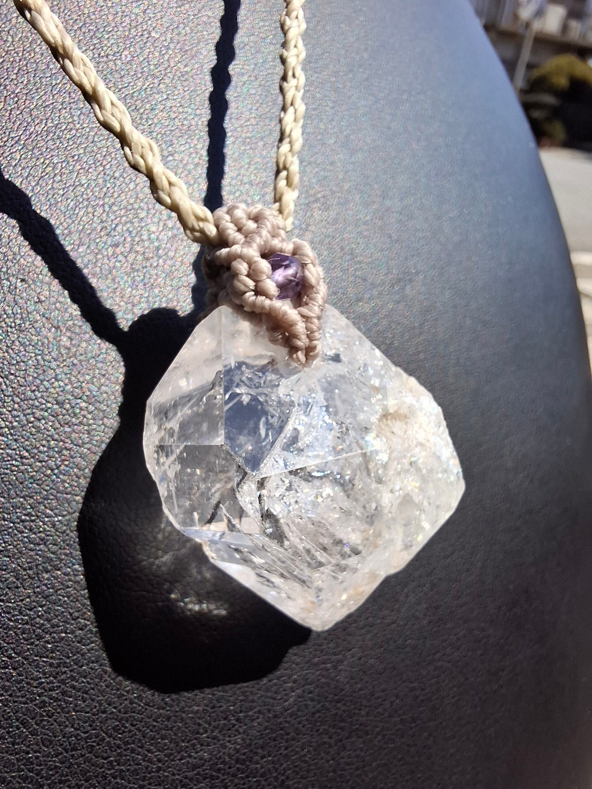 パキスタン産の水晶で作ったマクラメ編みのペンダントです。