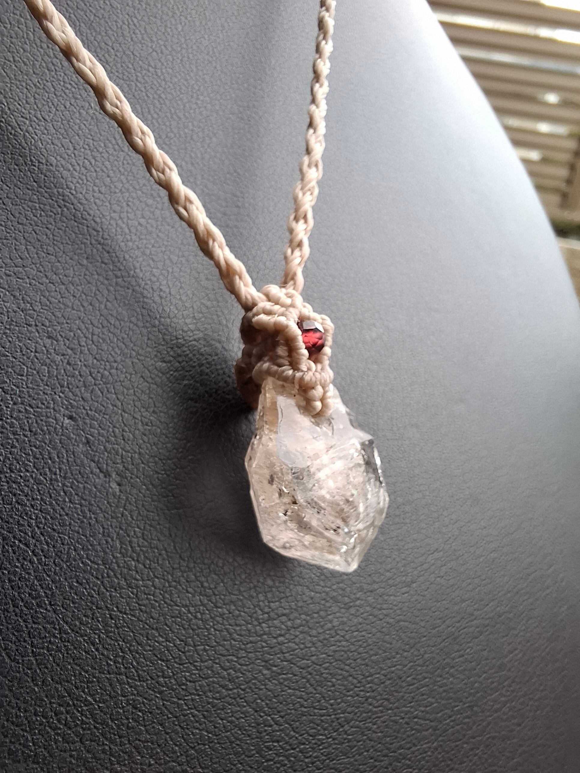 【希少!太古の石油入り】オイルインクォーツの天然石マクラメペンダント[PEN-352]