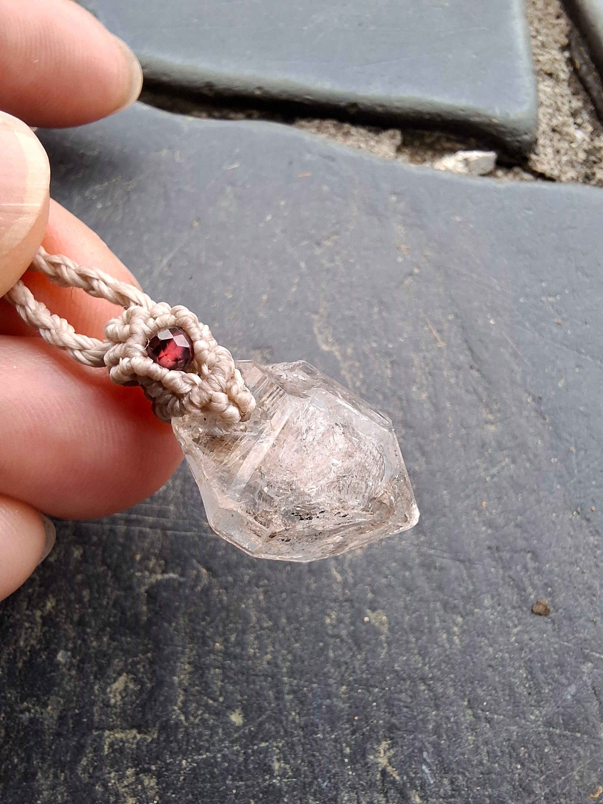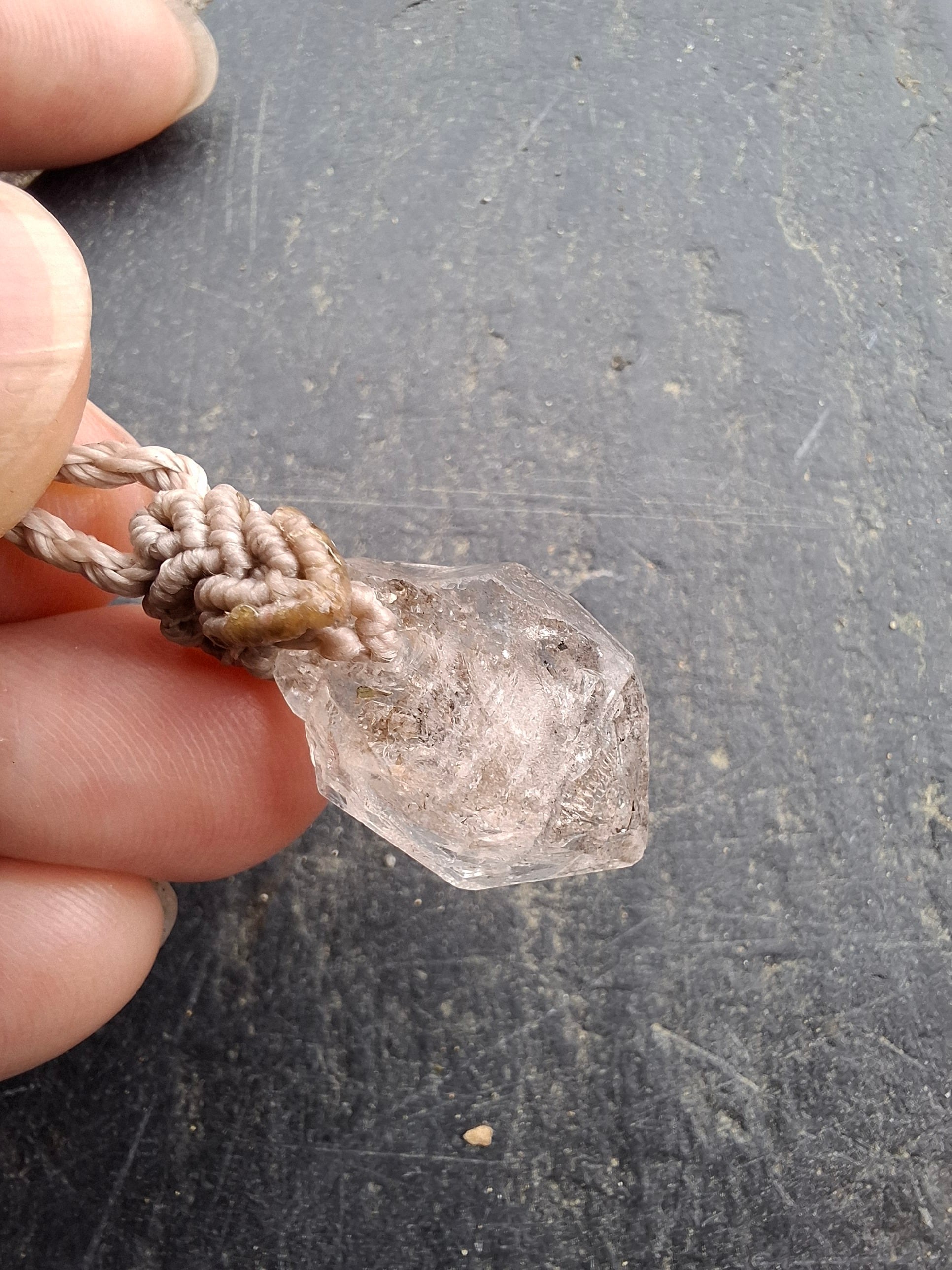 オイル(石油)インクォーツで作ったマクラメ編みのペンダントです。